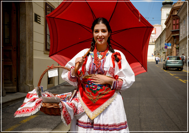 ゴルニィグラド(アッパータウン)のケーブルカー駅付近に、シェスティンスカ ノシニャという、美しい民族衣装を着た、きれいな女性がみやげ物を売っています。写真を取ることができます。ほんの気持ちで5クナぐらいあげるといいと思います。お土産も買えます。