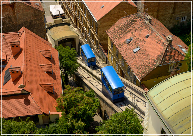 下の町からグラデツ、今の名前ゴルニィグラド(上の町の意)へは、世界一短距離66メートルのケーブルカーがあり、55秒で上れます。ケーブルカーは、1890年に建設され、はじめは蒸気でした。ケーブルカーは、クロアチア語でウスピニャチャと言いますが、よく故障したので、ザピニャチャ(歯止め、爪、止まって動かないの意)と呼ばれたりしました。